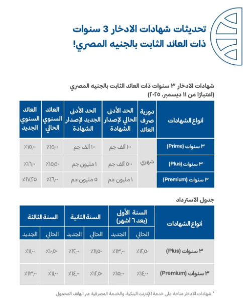 وبدأ العمل بالأسعار الجديدة اعتبارًا من اليوم 11 ديسمبر، وتم رفع الحد الأدنى للإصدار من 500 ألف جنيه إلى مليون جنيه، مع زيادة العائد السنوي من 15.5% إلى 16%، ورفع البنك التجارى الدولى الحد الأدنى للإصدار من مليون جنيه إلى 5 ملايين جنيه، وارتفع العائد السنوى من 16% إلى 17.25%.